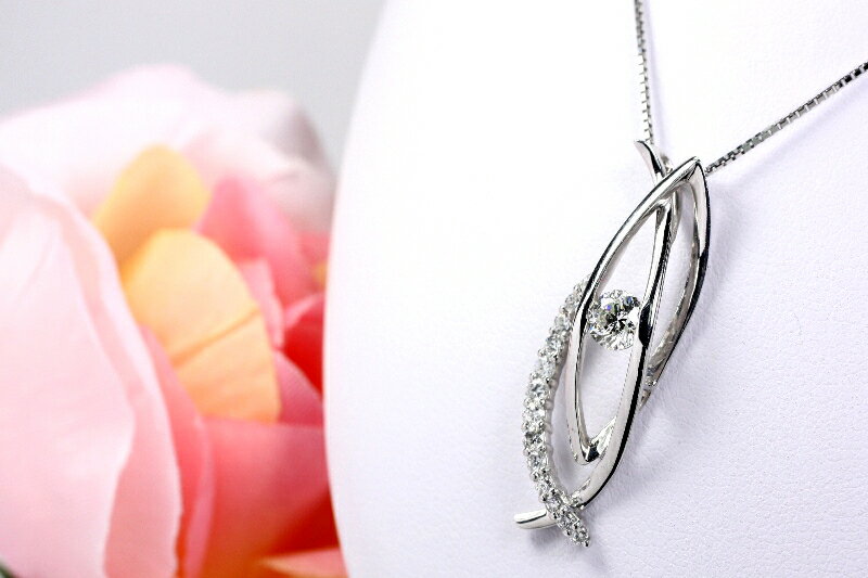 流れるような素敵デザイン ダイヤモンドペンダントネックレス K18WG ★